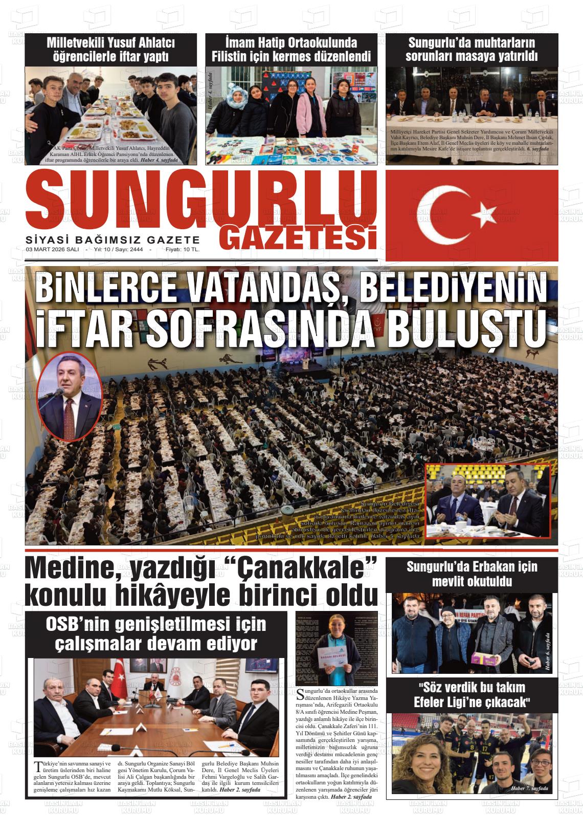 03 Mart 2026, Salı Günü Manşeti