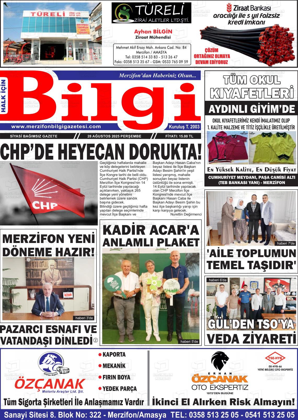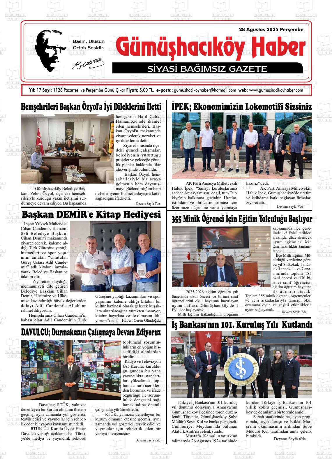 Amasya Yerel Gazeteleri 20 Nisan 2026, Pazartesi Günü Manşeti