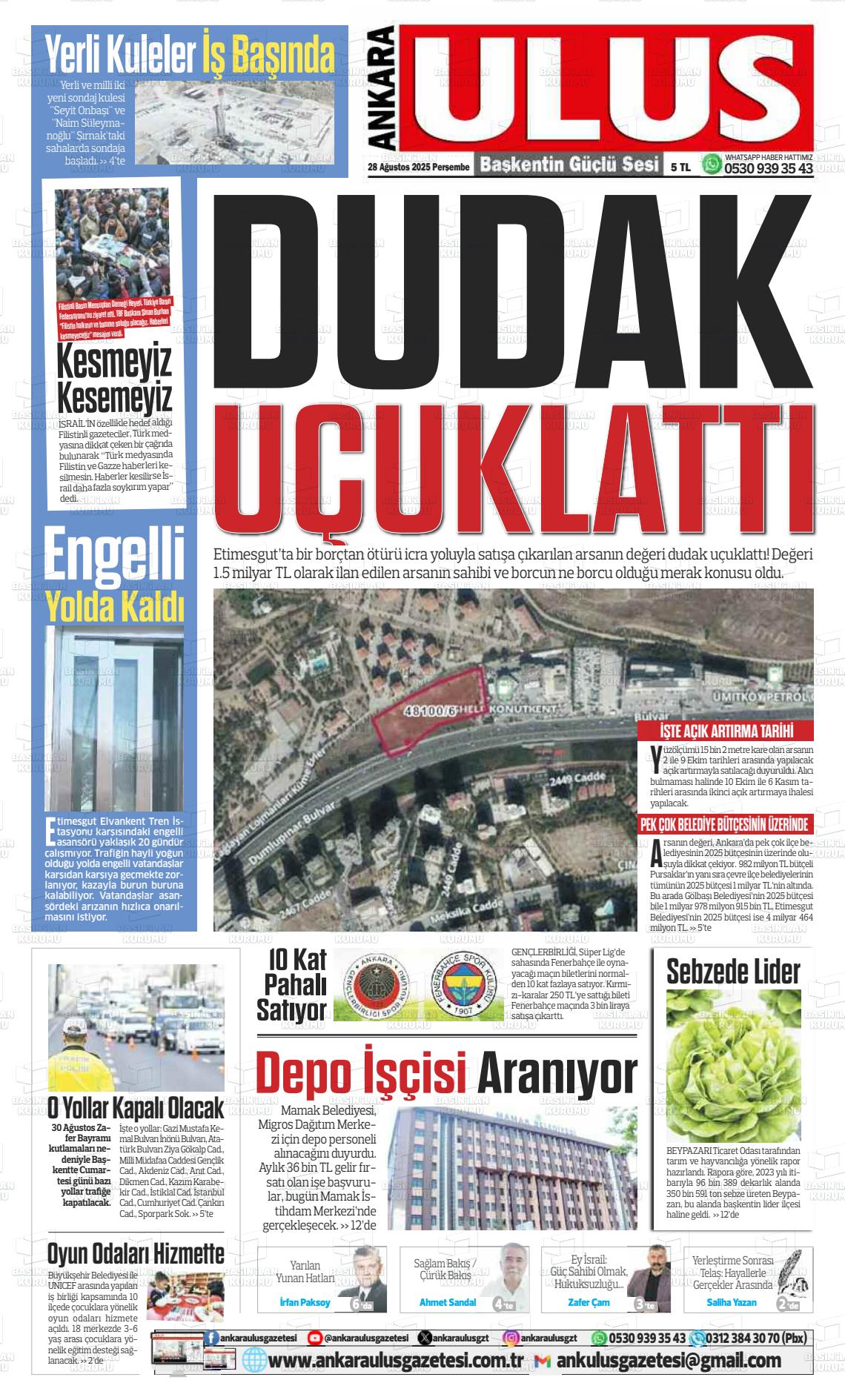 Ankara Yerel Gazeteleri 03 Mart 2026, Salı Günü Manşeti